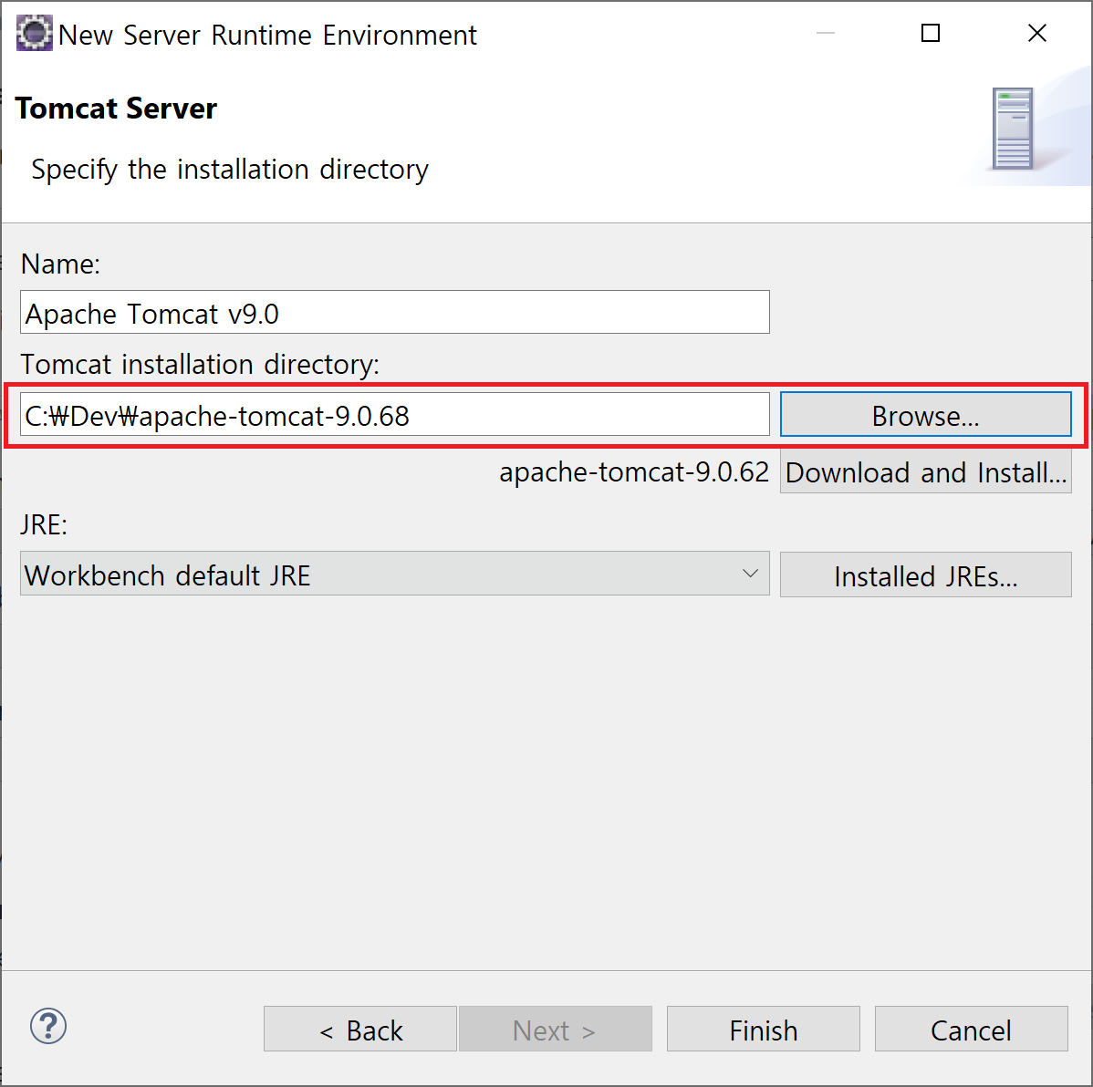 ④ 다운받은 톰캣 위치 설정.