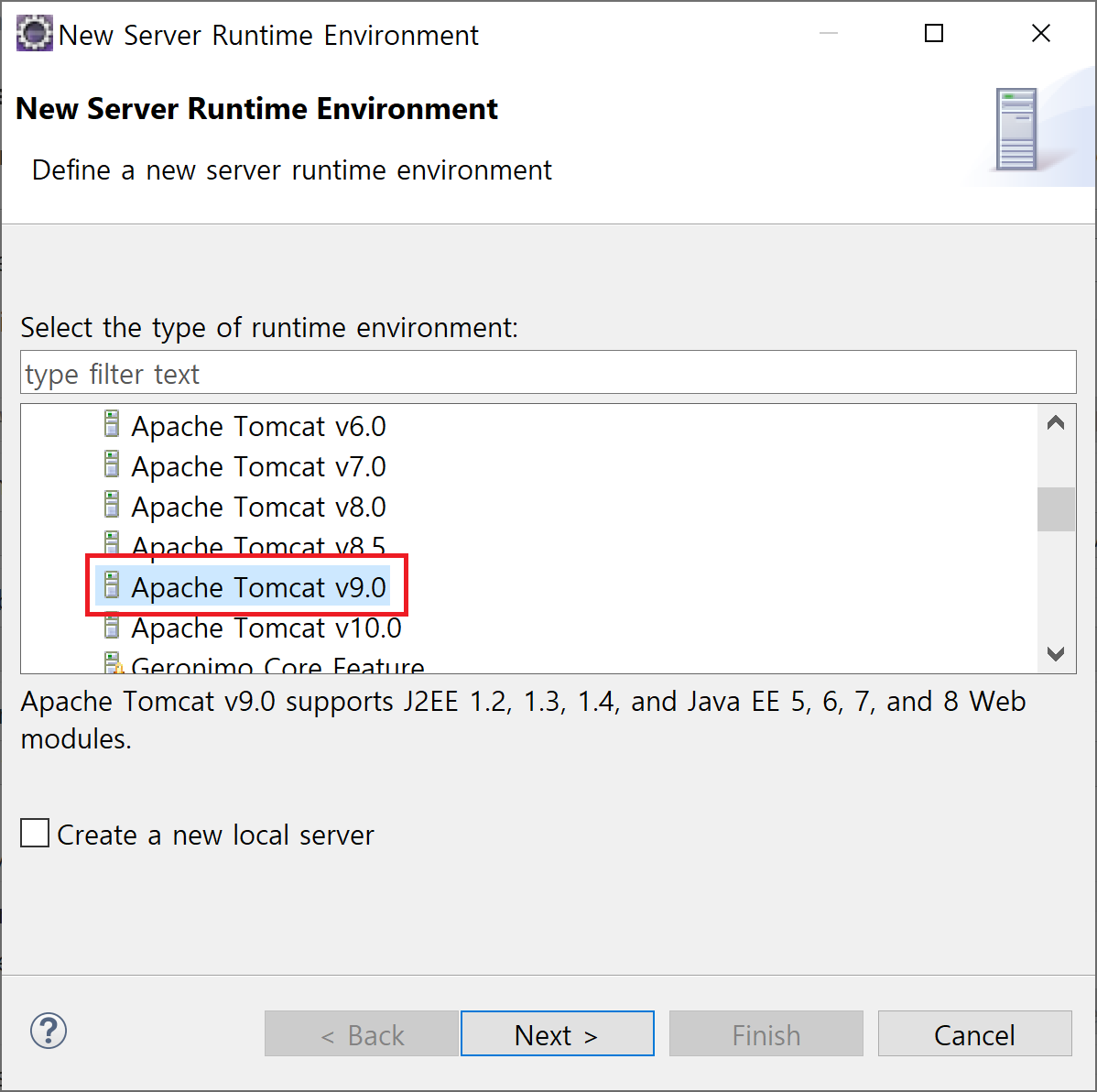 ③ 다운받은 톰캣 버전 선택.