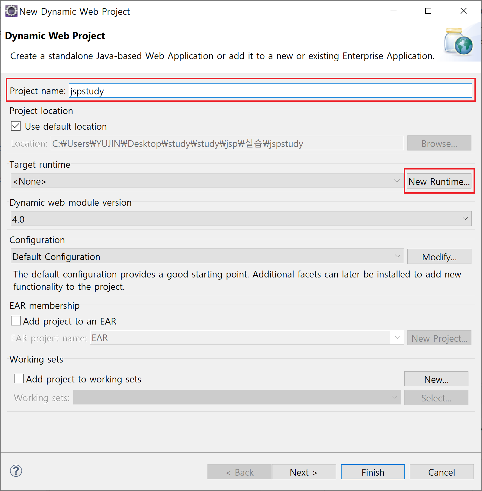 동적 웹 프로젝트 생성