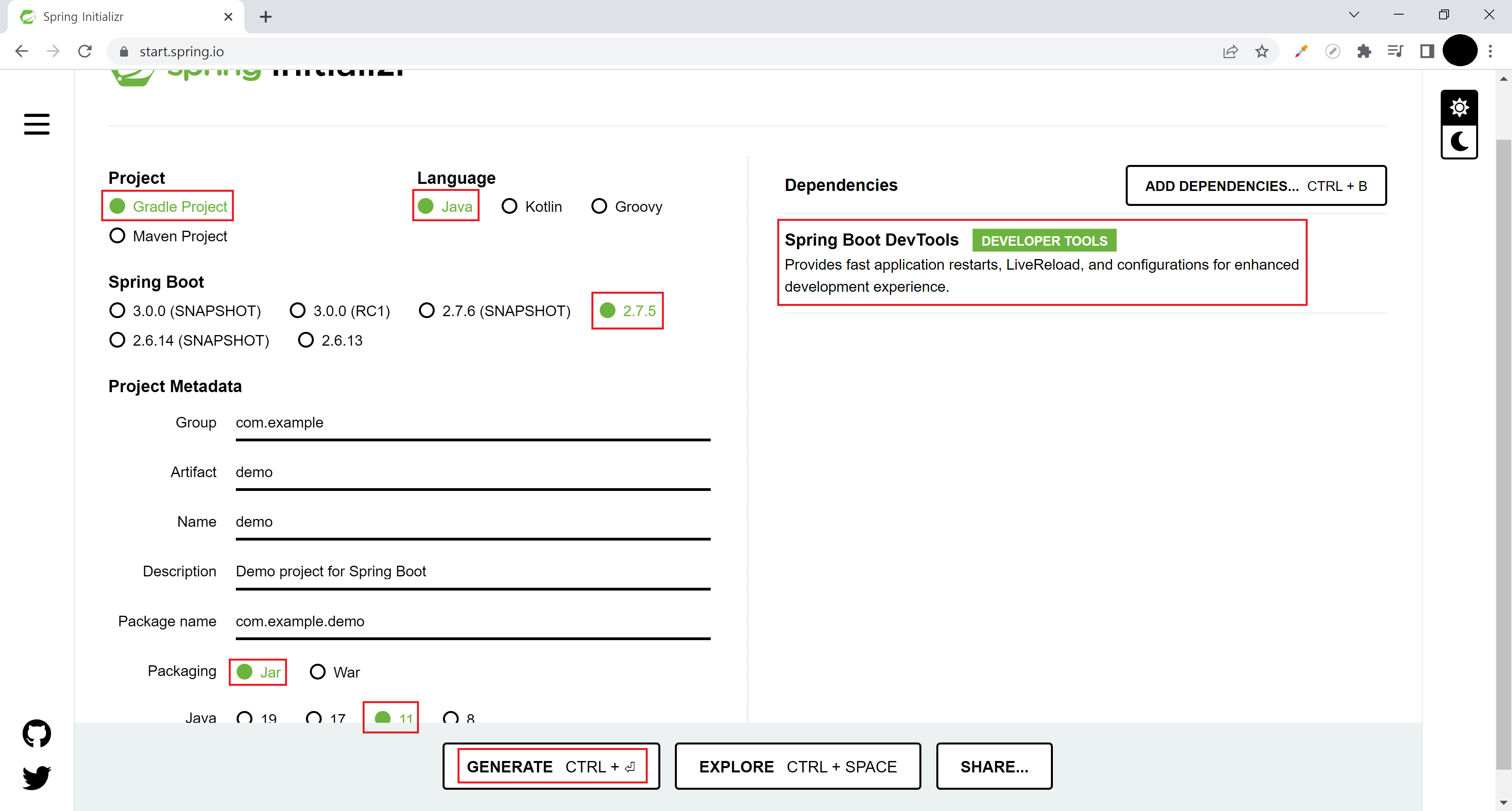[Spring] Spring Initializr