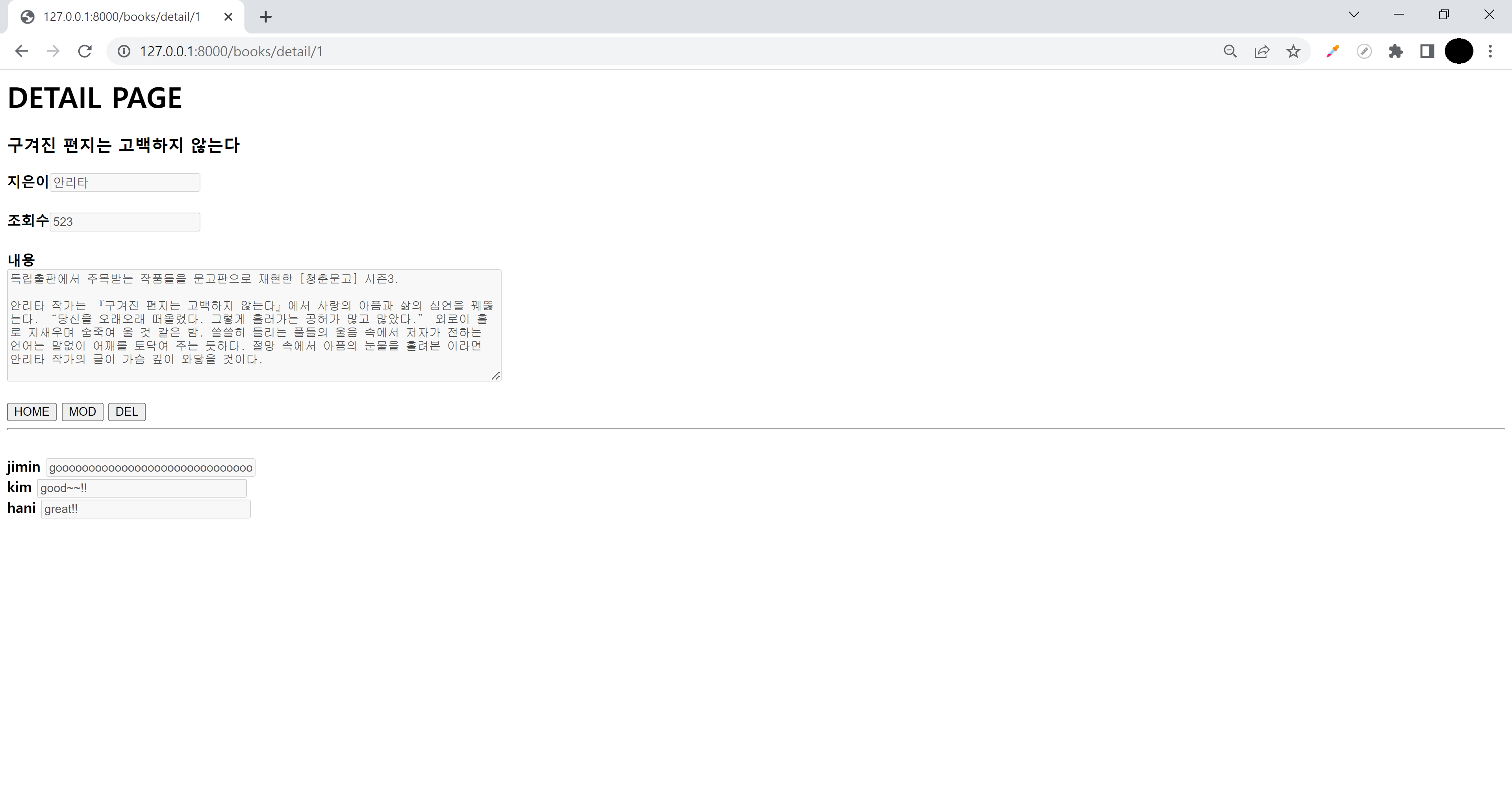 | [Django] 댓글 CRUD(4) - 댓글 삭제(D) (2) | 2022.12.21 |