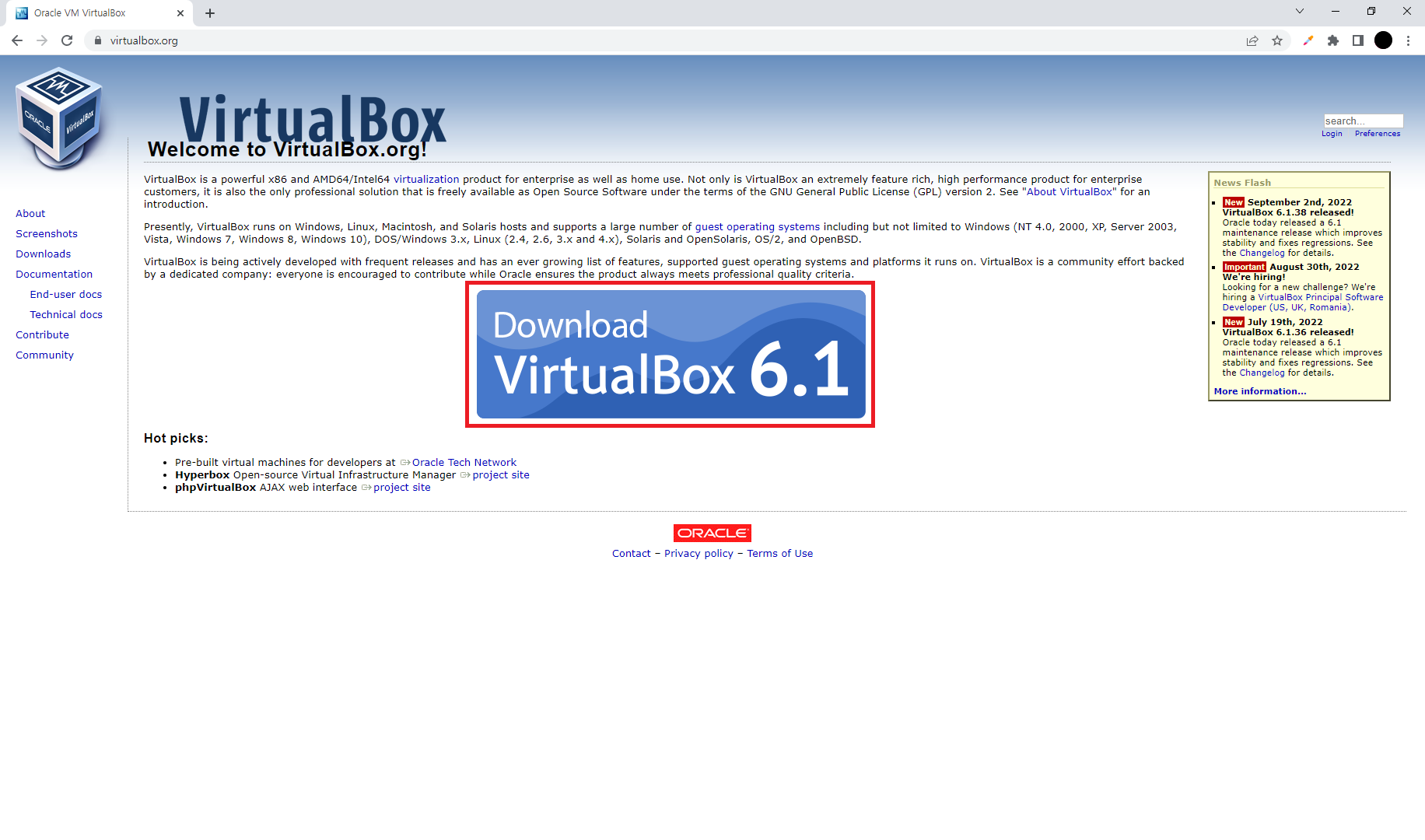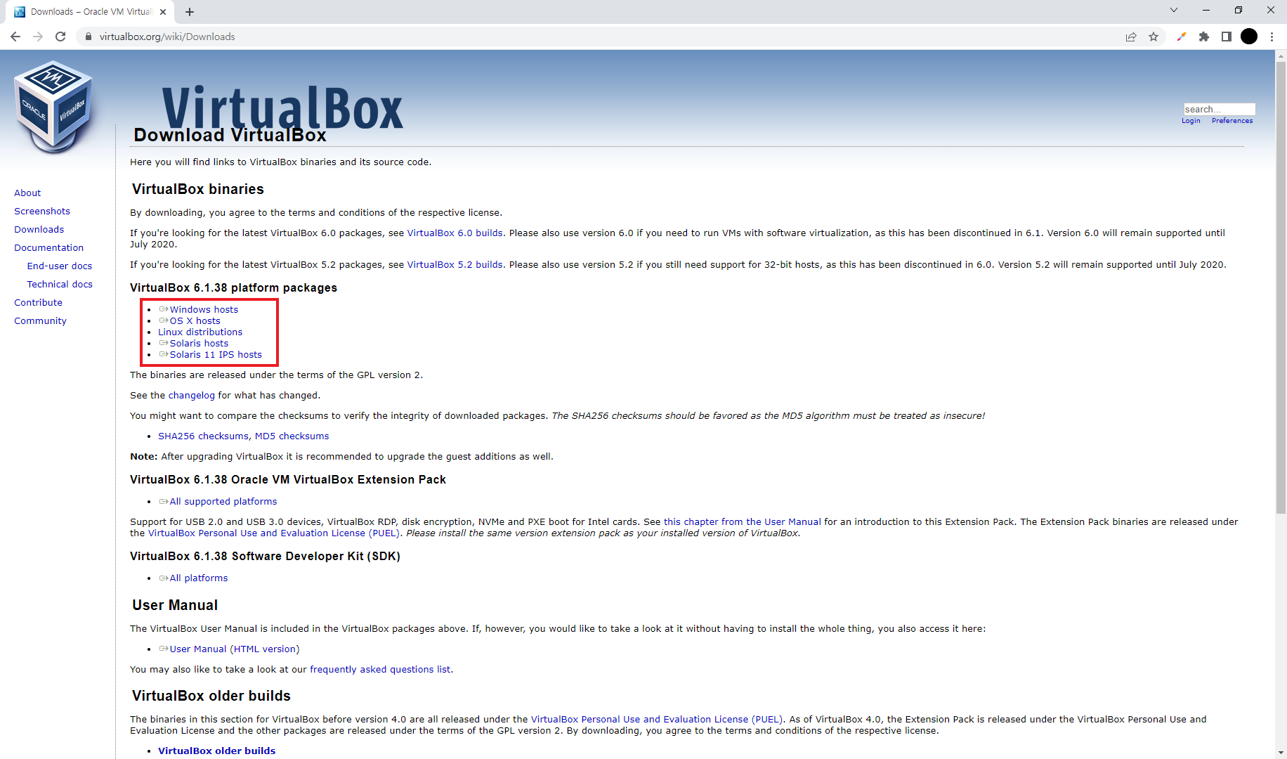 Welcome to VirtualBox.org! News Flash New September 2nd, 2022VirtualBox 6.1.38 released! Oracle today released a 6.1 maintenance release which improves stability and fixes regressions. See the Changelog for details. Important August 30th, 2022We're hiring!