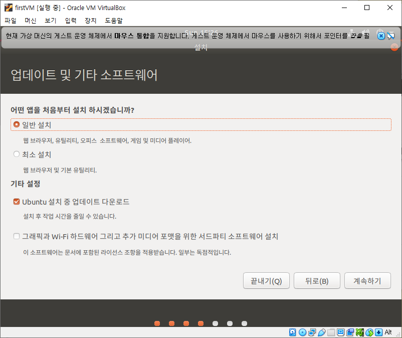 4. 아래와 같이 선택하고 계속하기를 클릭한다.